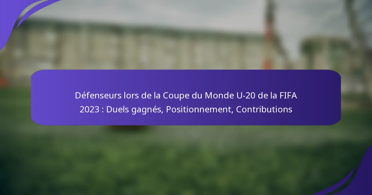 Défenseurs lors de la Coupe du Monde U-20 de la FIFA 2023 : Duels gagnés, Positionnement, Contributions
