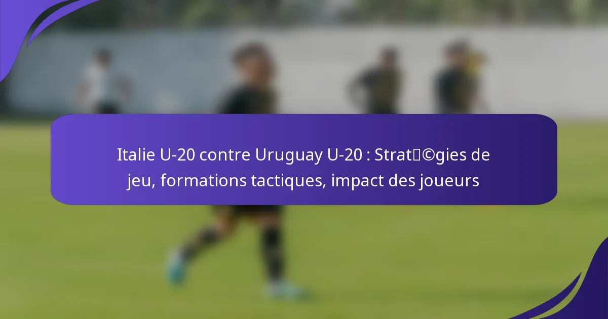 Italie U-20 contre Uruguay U-20 : Stratégies de jeu, formations tactiques, impact des joueurs