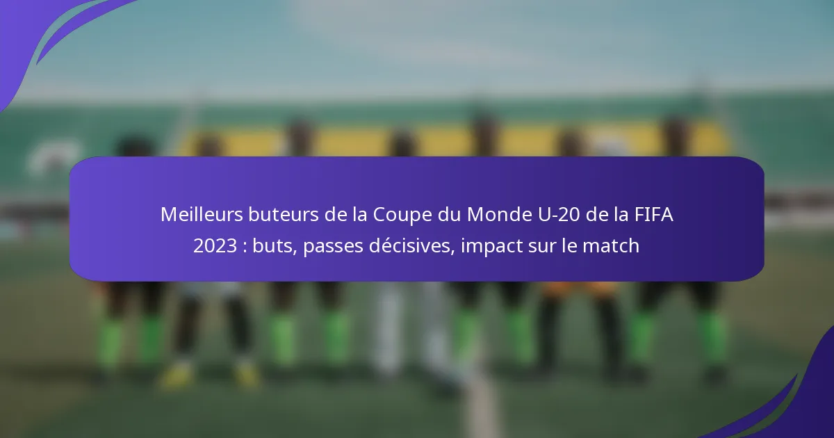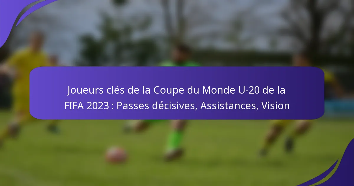Les statistiques et classements des joueurs de la Coupe du Monde U-20 de la FIFA 2023 mettent en avant les contributions individuelles au succès de leurs équipes. Les indicateurs clés incluent les buts marqués, les passes décisives et les minutes jouées, qui aident à identifier les joueurs remarquables tout au long du tournoi. Ces statistiques peuvent influencer les opportunités de carrière futures pour les jeunes talents.
