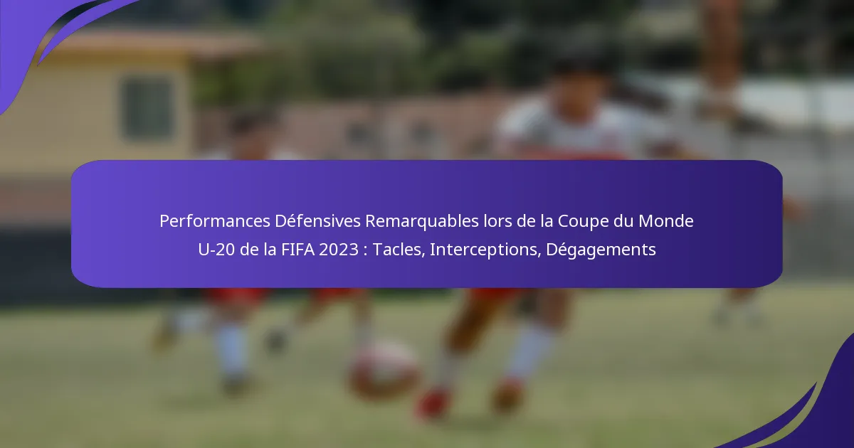 Performances Défensives Remarquables lors de la Coupe du Monde U-20 de la FIFA 2023 : Tacles, Interceptions, Dégagements